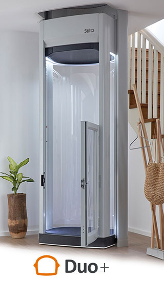 The Stiltz Duo Home Elevator is a unique and innovative domestic elevator that can be fitted almost anywhere in the home. Compact and attractive, it will carry 2 people in style and comfort.